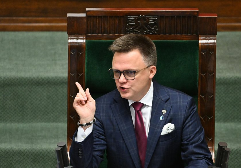 — To jest chamstwo, a nie debata parlamentarna — stwierdził Szymon Hołownia po wystąpieniu Michała Wosia. Marszałek Sejmu zaapelował: "od świń się w tej izbie nie wyzywamy". Odpowiedział posłowi PiS cytatem z Biblii. — I co, przyjemnie? — dodał.