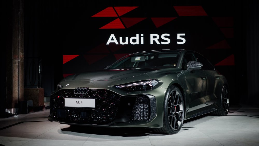 Na premierę Audi RS 5 w Warszawie wybrano specjalny model, który sprawił, że cała otoczka miała jeszcze więcej pieprzu. Lakier Bedford green metallic, ceramiczne hamulce RS z zaciskami w kolorze brązu oraz elementy z karbonu o wzorze camouflage zestawione razem tworzą bojową stylistykę. Nie każdemu spodoba się ta konfiguracja, jednak warto docenić fantazję.