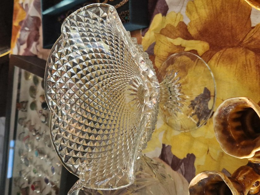 Ta szklana cukiernica została wystawiona do sprzedaży za 50 zł.