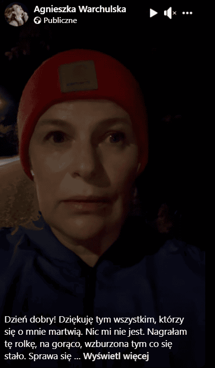 Aktorka opisała brutalny atak, którego padła ofiarą na warszawskim Wilanowie. Agnieszka Warchulska, znana m.in. z roli w serialu “Barwy szczęścia”, a także z filmów takich jak ”Cwał” Krzysztofa Zanussiego czy "Dług” Krzysztofa Krauze, od lat aktywnie udziela się również społecznie. Na swoim profilu w mediach społecznościowych często komentuje bieżące wydarzenia i apeluje o empatię oraz wzajemny szacunek.