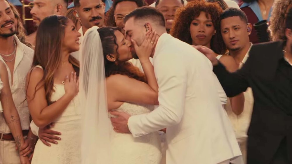 Najwięcej emocji wzbudził jednak moment, który początkowo wyglądał jak element choreografii. Około pięć minut po rozpoczęciu 13-minutowego występu kamera przeniosła się na scenę stylizowaną na portorykański plac. Uśmiechnięty celebrans ogłosił, że para została małżeństwem, nowożeńcy – ubrani na biało – pocałowali się, a wokół nich tańczyli muzycy i tancerze.