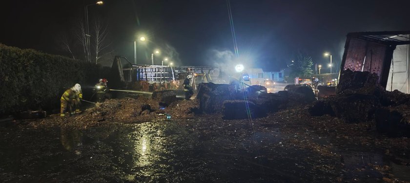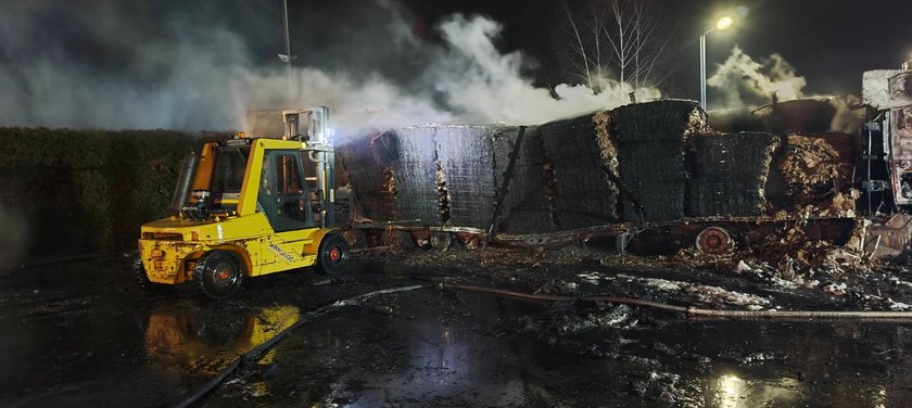 Strażacy musieli zmierzyć się z wyjątkowo trudnym zadaniem, a skala zdarzenia była ogromna. Na dwóch pojazdach składowana była sprasowana makulatura. To powodowało, że ogień szybko się rozprzestrzeniał.