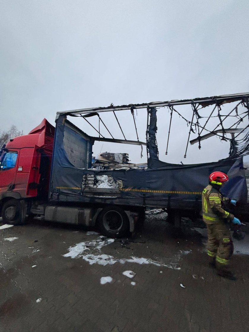 Obok placu, na którym były zaparkowane ciężarówki, znajduje się komis samochodowy. — Na szczęście udało nam się uratować stacjonujące w komisie pojazdy, który bezpośrednio graniczył z tym płonącym składem — dodaje st. kpt. Damian Dudek.