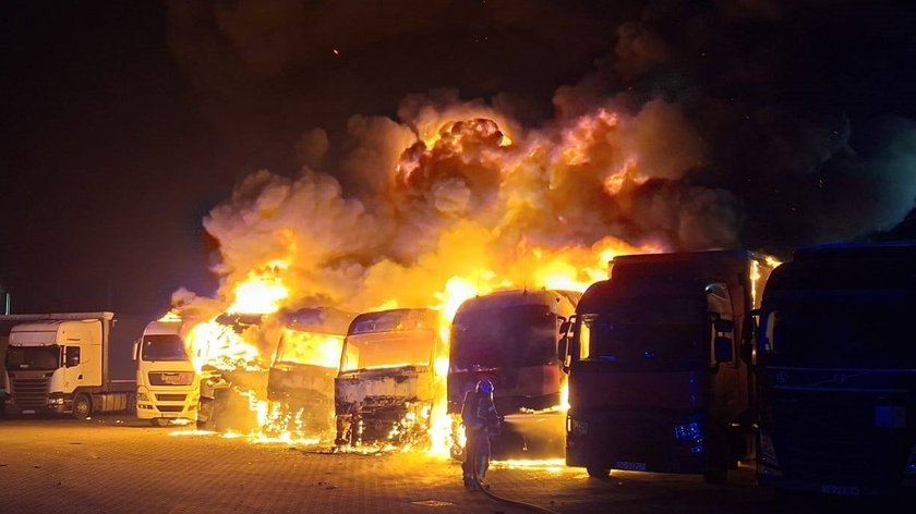 — Zgłoszenie dotarło do straży pożarnej o godz. 19.16. Na miejscu okazało się, że pożarem objęte są ciągniki siodłowe wraz z naczepami — mówi w rozmowie z "Faktem" st. kapitan Damian Dudek z Komendy Miejskiej PSP w Gliwicach. — Łącznie spaleniu uległo sześć ciężarówek, jedna z nich uległa nadpaleniu, ale na szczęście strażakom udało się nią odjechać i ugasić. Nadpaleniu uległ też jeden z samochodów dostawczych.