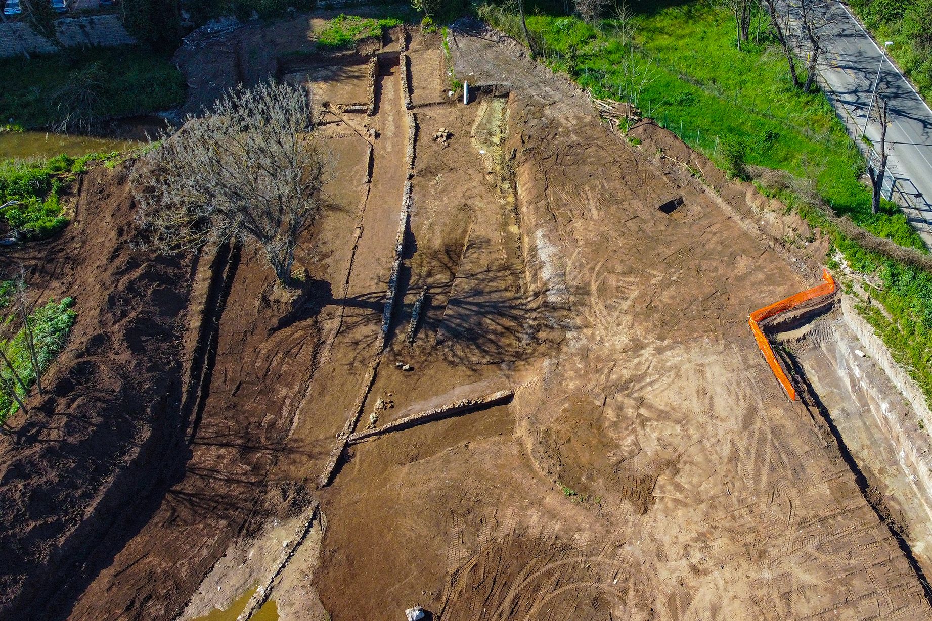Dotychczas naukowcy zauważyli, że prowadząca z północy na południe starożytna droga została po raz pierwszy uporządkowana w III wieku p.n.e., kiedy zbudowano wzdłuż niej duży mur oporowy z bloków tufu. W kolejnym stuleciu został on zastąpiony innym murem. Teraz obok drogi odkryto niewielką świątynię o wymiarach 4,5x5,5 metra, której mury wzniesiono metodą opus incertum i obłożono tynkiem. Opus incertum to prosta technika budowlana z II-I wieku p.n.e., w której powierzchnia betonowej ściany jest wysadzana nieregularnymi niewielkimi kawałkami kamienia, zwykle tufu.
