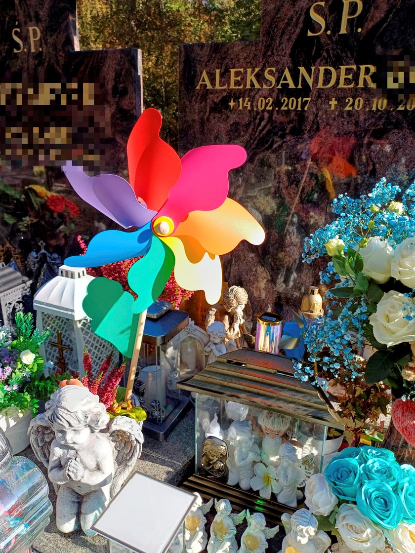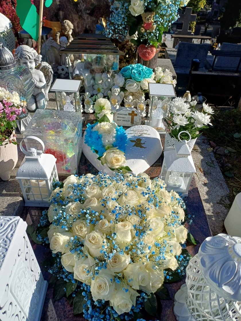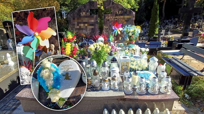 Grób chłopca zdobią aniołki, maskotki i zabawki, które były dla niego szczególnie ważne. W rządku ustawiono kolorowe samochodziki.
