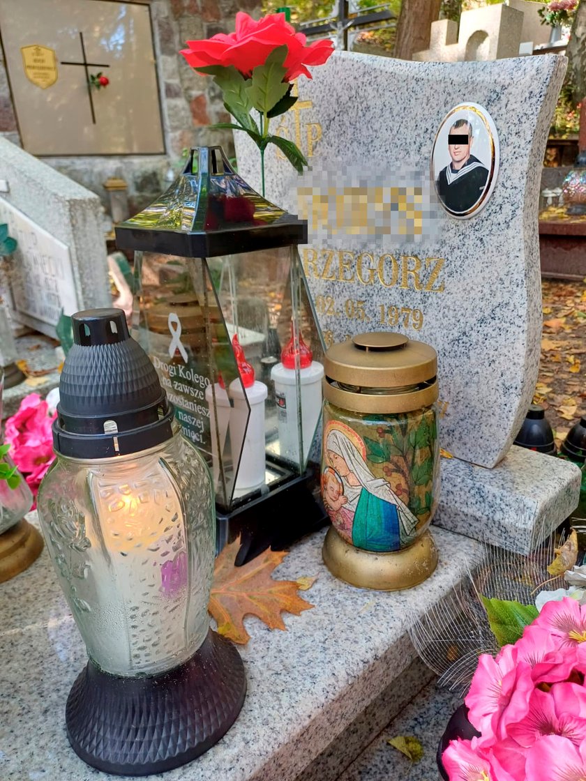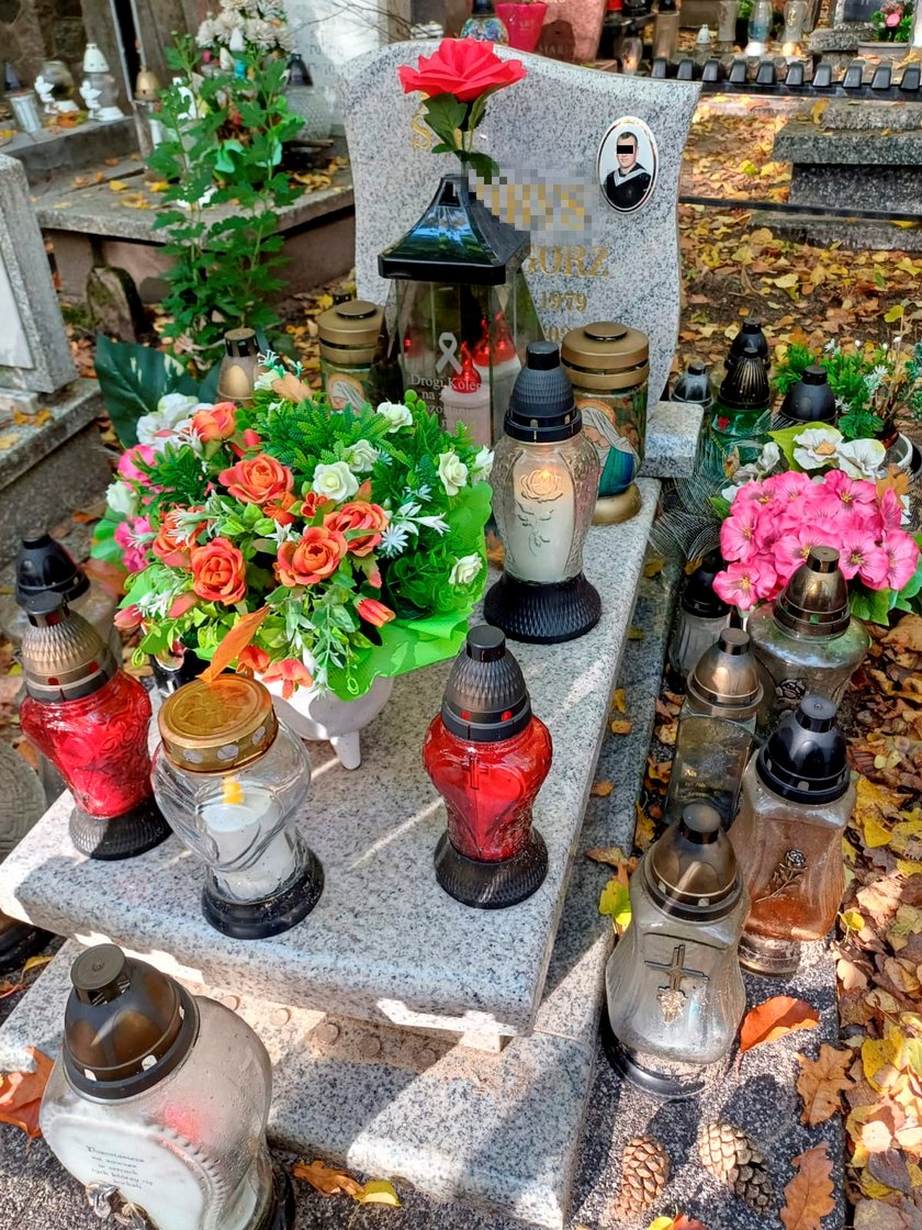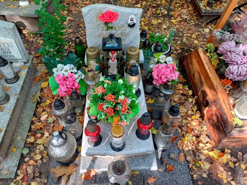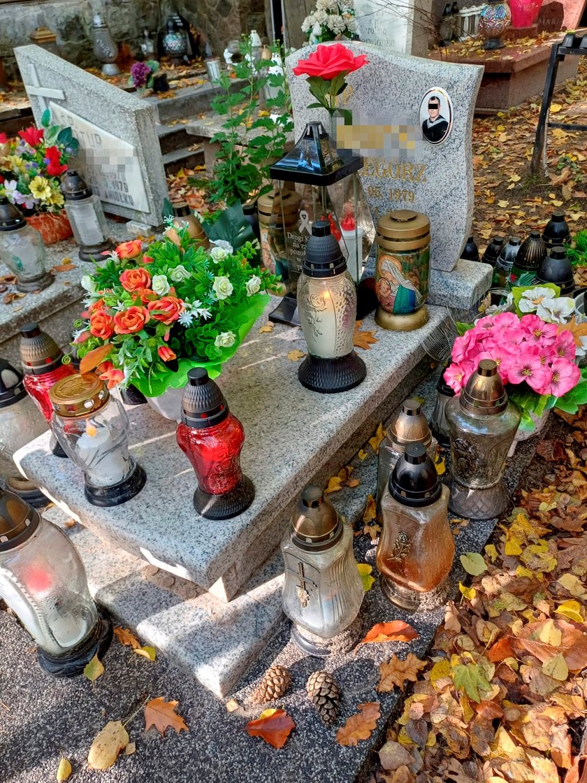 Byliśmy też przy grobie Grzegorza B. Jedno od razu rzuca się tu w oczy. Widać, że ciągle ktoś go odwiedza. Są kwiaty i płoną znicze.