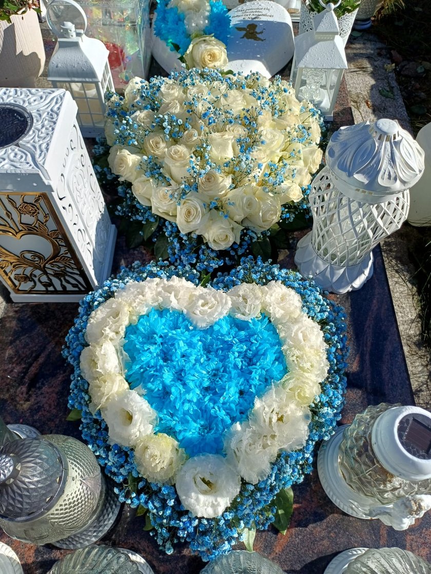 Na grobie chłopca jest serce z kwiatów, a na nim przejmujący napis. Trudno nie uronić łzy.