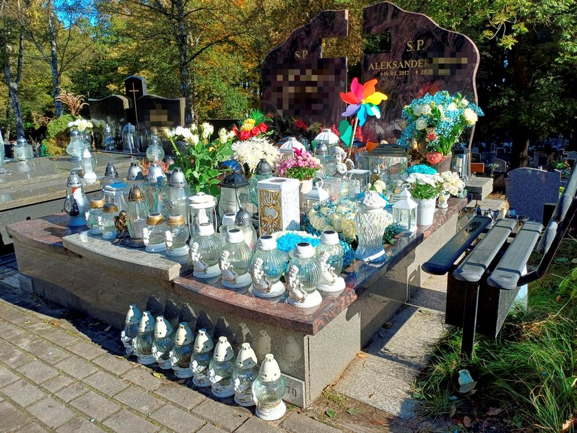 6-latek spoczywa w rodzinnym grobowcu. Kiedy reporterzy "Faktu" odwiedzili to miejsce w drugą rocznicę śmierci chłopca, nie było osoby, która nie zatrzymałaby się tam, nie popatrzyła, nie postała w skupieniu. Grób natychmiast rzuca się w oczy. Widać, że bardzo często odwiedzają go bliscy Olusia, ale tego dnia wyglądał jeszcze bardziej wyjątkowo. Jest tu masa białych zniczy, świeżych wiązanek z biało-niebieskich kwiatów. Łzy wzruszenia wywołują niewielkie wieńce w kształcie serca. Na jednym z nich umieszczono przejmujący napis: Bóg powołał Cię do siebie, żebyś był Aniołkiem w Niebie. Obraz tego miejsca po prostu wywołuje łzy.