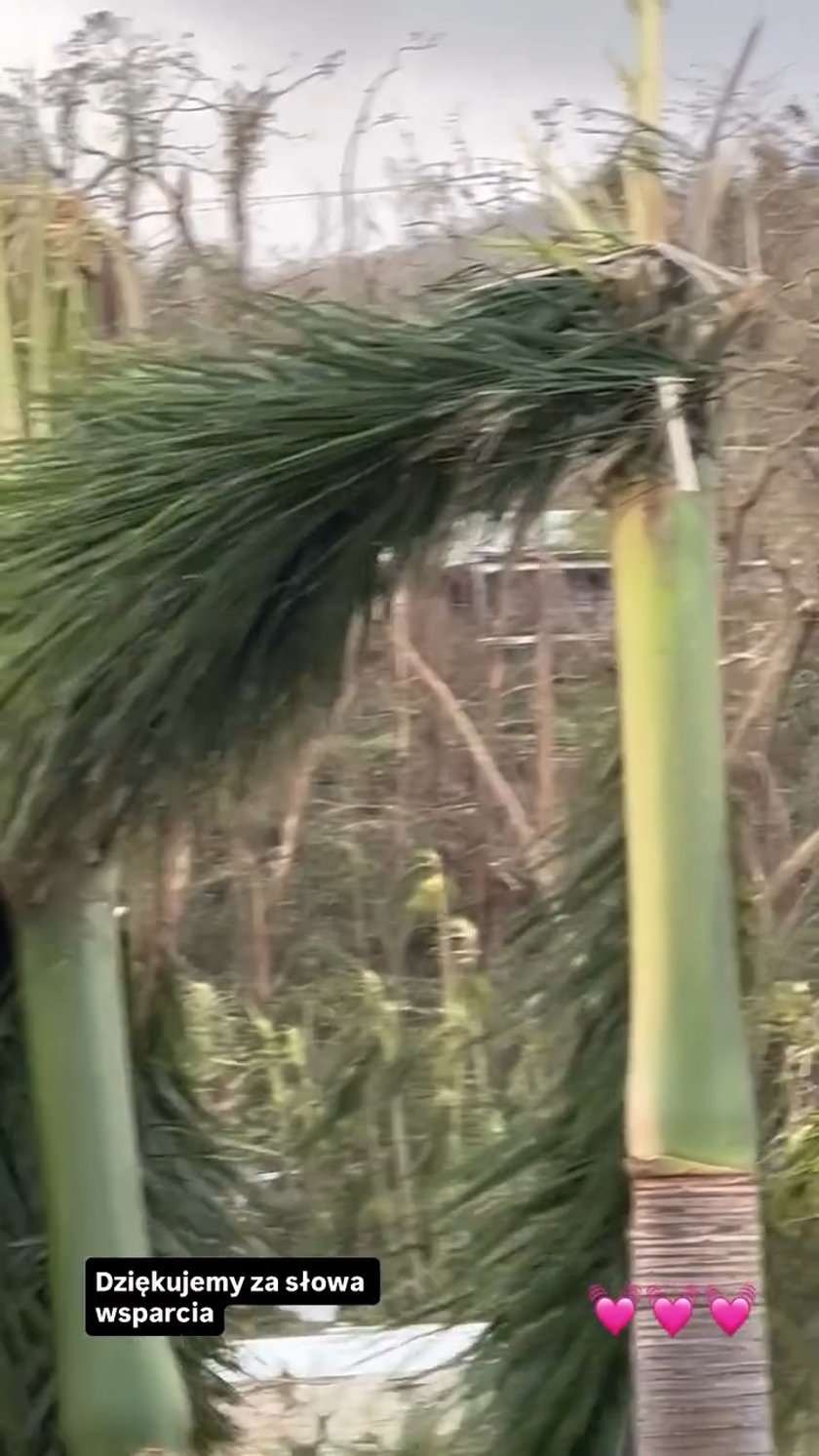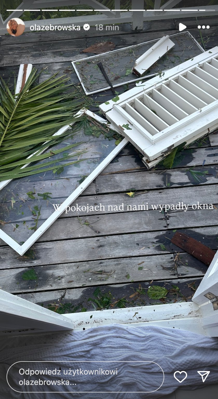 Żebrowscy mieli szczęście, ich hotel znajdował się w naturalnym obniżeniu terenu. Dzięki temu huragan nie uderzał w okna z pełną siłą. — Tutaj nad nami wiele okiennic, szyb, pergoli różnych po prostu urwało się z wielkim hukiem. Poupadały. Wszystkie palmy są tutaj gołe — relacjonował aktor.
