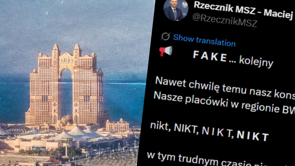 Przyznał, że to "kolejny fake". "Nawet chwilę temu nasz konsul w ZEA wypowiadał się w TV. Nasze placówki w regionie BW od soboty działają w trybie 24h, nikt, NIKT, N I K T, N I K T w tym trudnym czasie nie wyjeżdżał z placówek" – oświadczył.