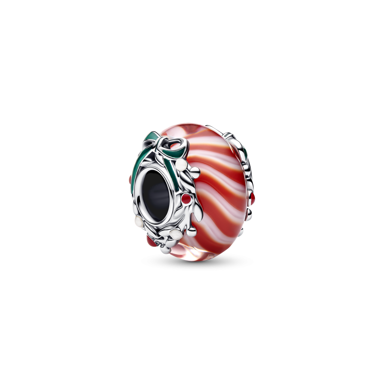 Słodki jak wspomnienia z dzieciństwa charms w kolorze czerwono-białym, ozdobiony motywem jemioły i zielonej kokardy. Jego spiralny wzór przywołuje aromat cynamonu i zapach świeżo pieczonych pierników. To biżuteria, która od razu wprowadza w świąteczny nastrój: idealna dla osób, które kochają ten magiczny czas pełen ciepła i uśmiechu.