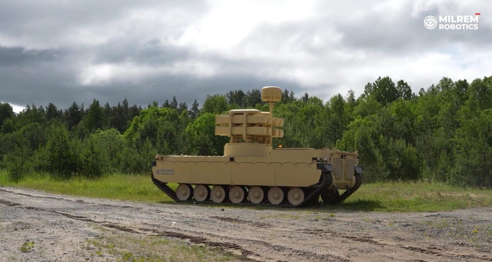 Trochę na owoce tego projektu czekaliśmy, ale oto właśnie 1 lipca 2025 roku firma Milrem przeprowadziła udaną demonstrację zintegrowanej platformy bojowej w koordynacji z ministerstwami obrony Francji, Szwecji, Belgii i Cypru. System ten wykonał ataki poza zasięgiem wzroku, raził cele niewidoczne gołym okiem i zaprezentował pełną świadomość elektromagnetyczną. Udostępnione nagranie nie ukazało momentu wystrzału, a jedynie przedstawiło w terenie obecną formę systemu, który składa się z trzech głównych elementów: