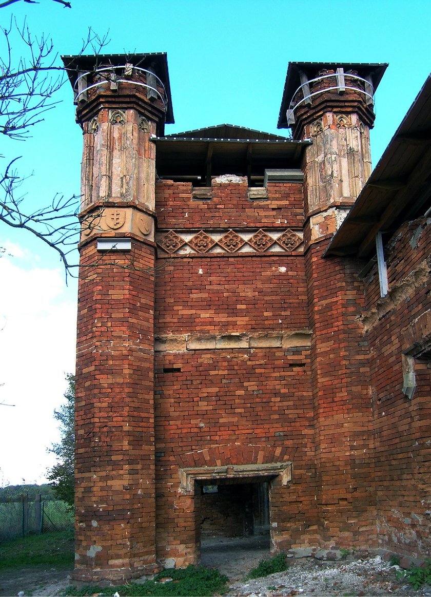 Poza granicami rezerwatu zachowała się jeszcze jedna pamiątka po parku romantycznym Potockich — neogotycka brama wjazdowa z 1846 r., zaprojektowana przez Henryka Marconiego. Jej dawny wygląd można sobie wyobrazić, patrząc na płaskorzeźby zdobiące kolumny, choć obecnie większą część bramy zasłania duża, szara blacha.