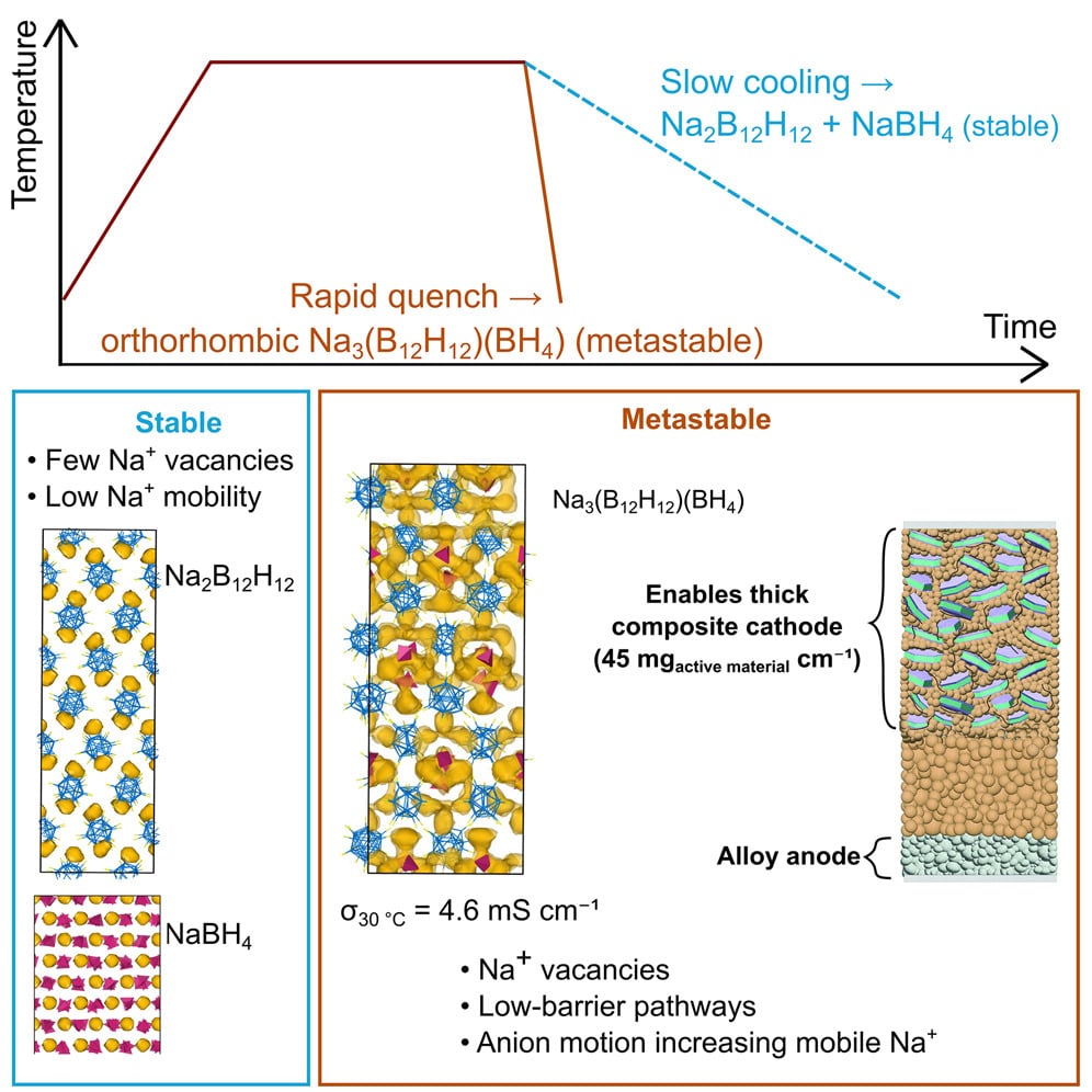 Kluczowym osiągnięciem tych prac jest opracowanie metody stabilizacji metastabilnej formy hydrydoboranu sodu. Specjaliści w swojej pracy zastosowali technikę polegającą na podgrzaniu materiału do momentu krystalizacji, a następnie jego szybkim schłodzeniu. Dzięki temu udało się uzyskać ustabilizowaną strukturę krystaliczną. Chociaż sama metoda szybkiego chłodzenia nie jest nowością, to jej zastosowanie w przypadku stałych elektrolitów stanowi prawdziwą innowację.