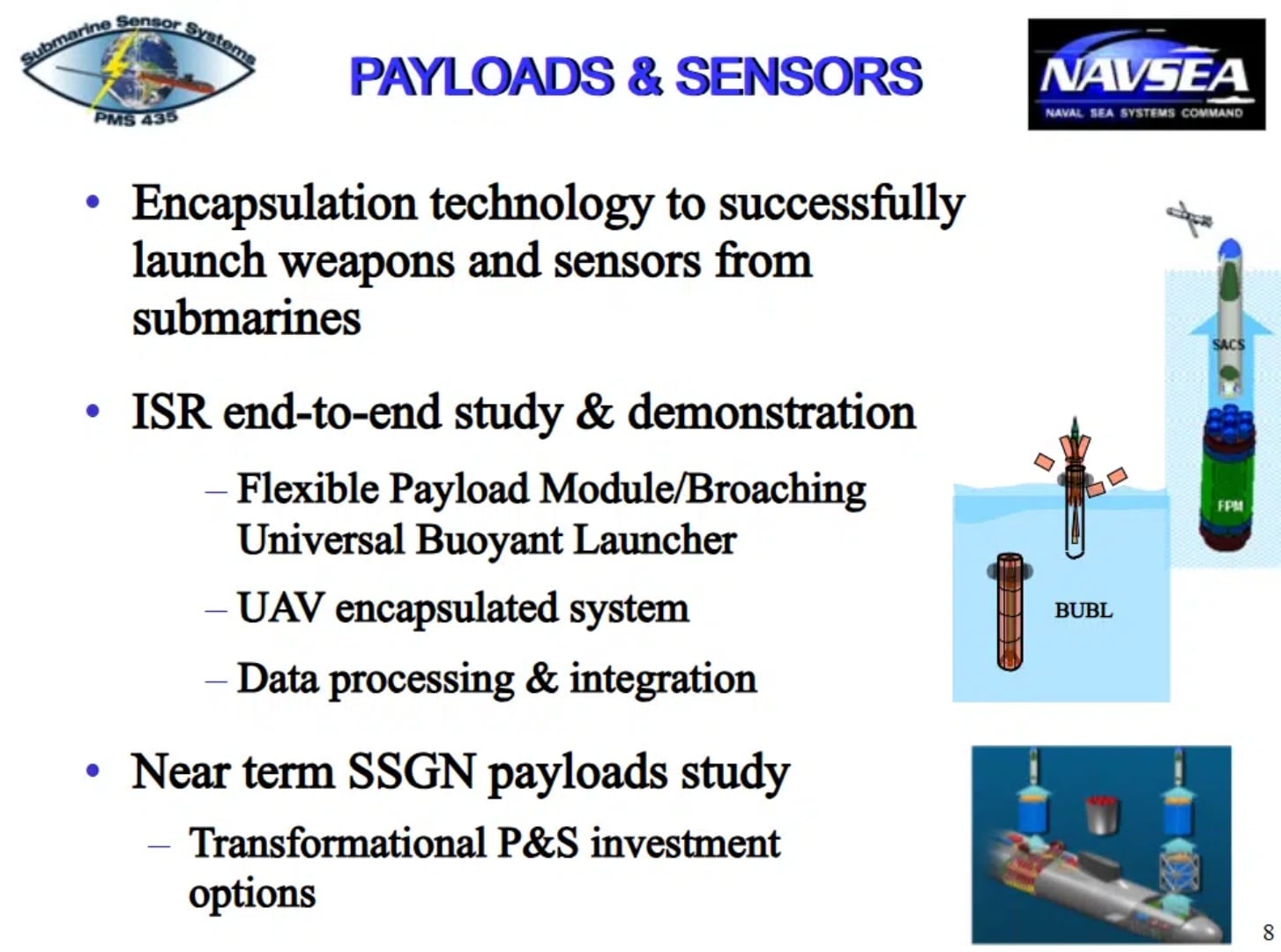 Firma Northrop Grumman zaprezentowała system Stealthy Affordable Capsule System (SACS) połączony z pociskiem przeciwradarowym dalekiego zasięgu AGM-88G AARGM-ER (Advanced Anti-Radiation Guided Missile – Extended Range). SACS to “tani kapsułowy system o cechach stealth”, który został opracowany pierwotnie na początku lat 2000, jako ot platforma startowa działająca pod wodą, która jest zdolna do przenoszenia zaawansowanego uzbrojenia. Teraz koncepcja tego typu kapsuły została rozwinięta do obsługi Flexible Payload Module (FPM), a więc sprzęcie zaprojektowanym dla okrętów typu Ohio, który ewoluował do formy Virginia Payload Module (VPM) zintegrowanego już z okrętami typu Virginia w wersji Block V.
