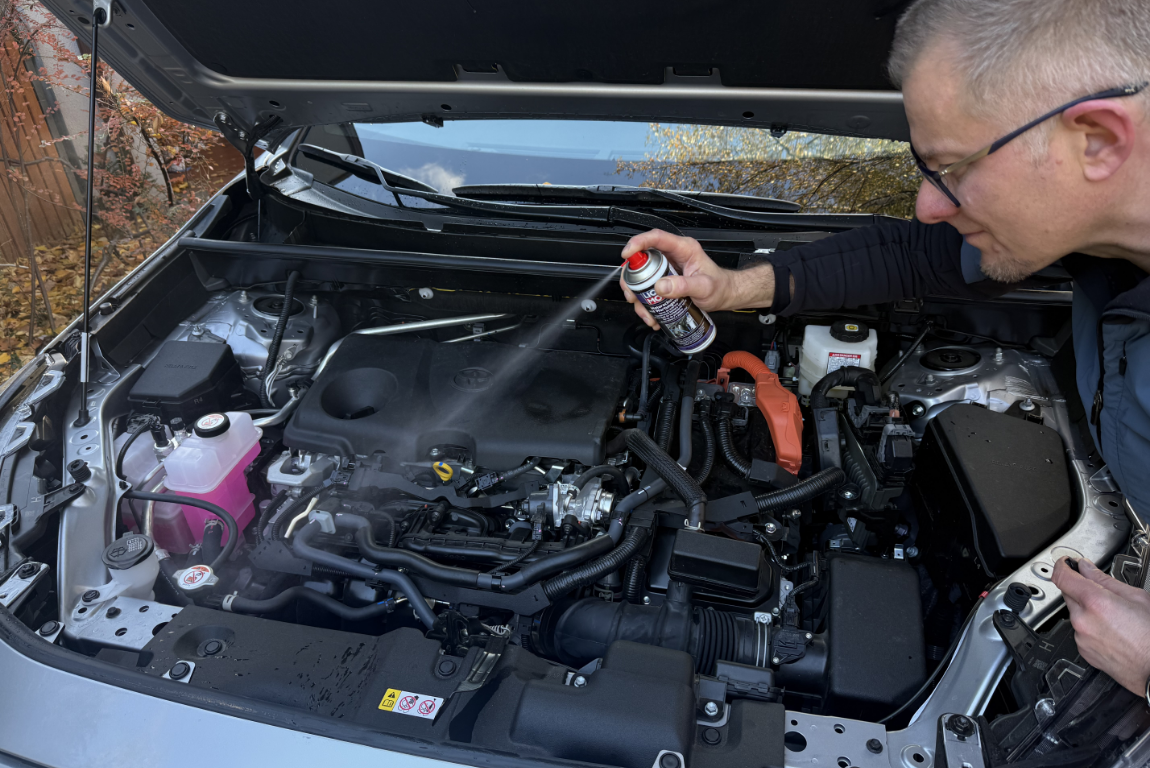 Preparatem odstraszającym kuny spryskuję co dwa-trzy tygodnie wygłuszenie maski, wszelkie miękkie materiały wygłuszające i izolujące termicznie, jakie widoczne są w komorze silnika, a także wiązki elektryczne i gumowe rurki. Z doświadczenia wiem, że te bestie potrafią pogryźć nawet plastikową osłonę ozdobną silnika. Odkąd jednak stosuję tę chemię, która – jak dla mnie – ma zapach całkiem neutralny, nie zanotowałem żadnych strat pod maską samochodu.