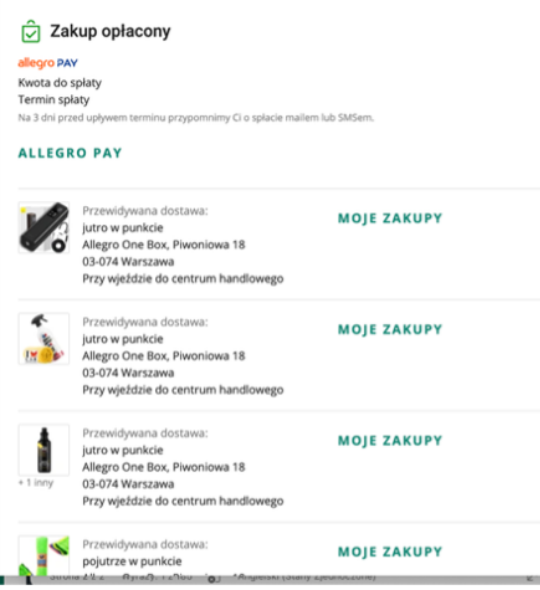 Lubię zakupy na Allegro, bo robi się je ekspresowo, a do tego, gdy się ma wykupiony program Smart, nie płaci się za przesyłkę – i to już przy przesyłkach od 45 zł. System mnie zna, domyślnie wpisuje dostawę do „mojego” zielonego automatu paczkowego, płacę za pomocą Allegro Pay (czyli dostanę zbiorczy rachunek za jakiś czas) – cała procedura zajmuje jakieś 30 sekund.
