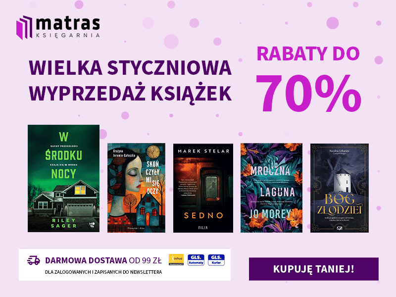Pamiętajcie, że matras.pl zapewnia bezpłatną dostawę od 99 zł do Paczkomatów InPost oraz kurierem GLS. Wystarczy kilka wybranych tytułów, aby cieszyć się nowymi lekturami bez ponoszenia kosztów wysyłki.