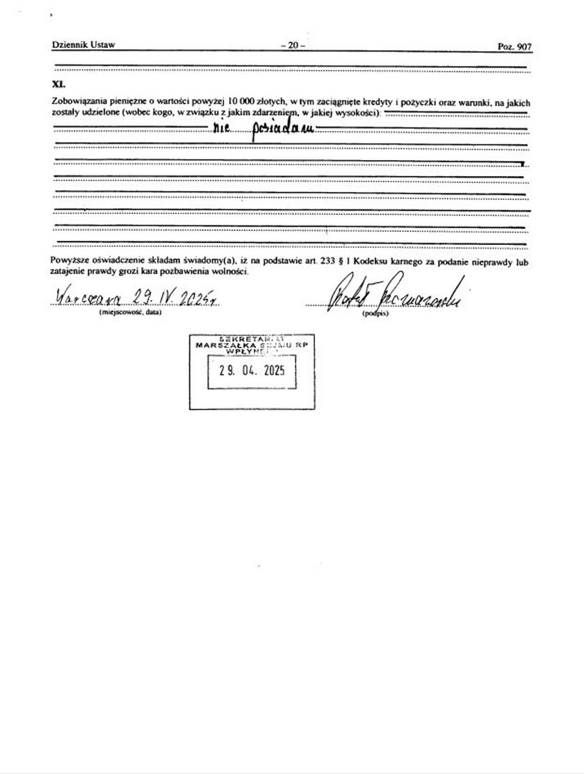 Oświadczenie majątkowe Rafała Romanowskiego.